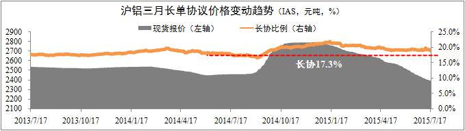 滬鋁三月長協(xié)比例繼續(xù)回落。監(jiān)控數(shù)據(jù)顯示,滬鋁三月長協(xié)比例繼續(xù)保持回落趨勢,且與氧化鋁現(xiàn)貨報價之間的差距進一步拉大。截至7月17日,滬鋁三月長協(xié)比例逐步回落至19.1%,同比下降0.2個百分點,月化波動區(qū)間為19.1%-19.8%。從下滑區(qū)間幅度上看,滬鋁三月結(jié)算價月均下滑0.08%,氧化鋁報價下滑0.14%,在長協(xié)比例相對穩(wěn)定的前提下,預計氧化鋁價格將逐步趨穩(wěn)。