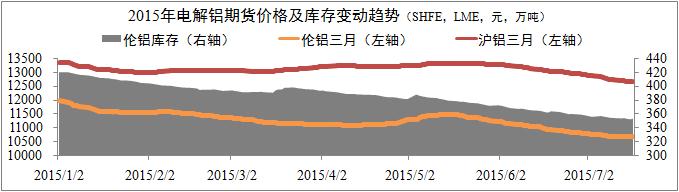 發(fā)稿時間:2015-07-18電解鋁現(xiàn)貨價格繼續(xù)回落。監(jiān)控數(shù)據(jù)顯示,7月上旬電解鋁現(xiàn)貨價格繼續(xù)保持下滑趨勢,且下滑幅度有所擴(kuò)大。截至7月17日,長江有色現(xiàn)貨價格跌至12503元/噸,南儲華南跌至12543元/噸,月化日均跌幅分別為0.14%和0.15%,同比分別擴(kuò)大0.03和0.05個百分點。從數(shù)據(jù)分布上看,目前現(xiàn)貨價格與滬鋁三月期貨價格之間的差值已收窄至100元左右,預(yù)計該趨勢將進(jìn)一步延續(xù)。