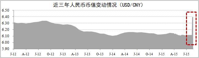 人民幣技術性貶值。央行于8月11日調整人民幣匯率中間價報價機制。截至8月20日,美元兌人民幣匯率上升至6.4,為近三年來的高點,人民幣出現貶值現象。其中,較8月10日貶值4.6%,較8月11日貶值2.7%。此次人民幣貶值屬于技術操作層面問題,主要目的在于消除人民幣中間價與市場匯率之間的偏差,為應對9月份美聯儲加息造成的系統性貶值做好準備。