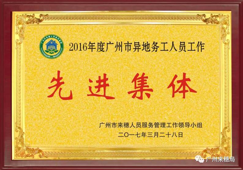 2016年度推薦評選工作于今年1月啟動,在推薦申報、資格審核、綜合評審、社會公示的基礎上,最終選出200名來穗務工人員和50個集體分別授予2016年度廣州市優秀異地務工人員(技能人才)、異地務工人員工作先進集體榮譽稱號。獲榮譽稱號的個人可直接申請入戶廣州,同時在本市參加技能培訓、子女入學、申請公租房資格等方面優先安排。