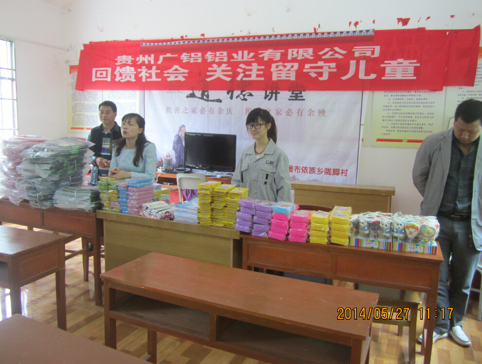 上午9:30時,滿載慰問品的車隊從公司出發(fā),并用半小時左右的時間到達目的地——隴腳村。隴腳村位于貴陽市東北部烏當區(qū)新堡布依族鄉(xiāng)境內(nèi),地處山區(qū),經(jīng)濟落后,交通閉塞。在當?shù)卮逦瘯姆e極配合下,慰問活動進展井然有序。到達目的地后,我們首先向各位村民簡要介紹了貴州廣鋁鋁業(yè)有限公司以及此行的目的,隨后為留守兒童逐一派發(fā)了書包、文具等學(xué)習(xí)用品。看到小朋友們臉上天真無邪的笑容,我們的心中充滿了喜悅和感動。